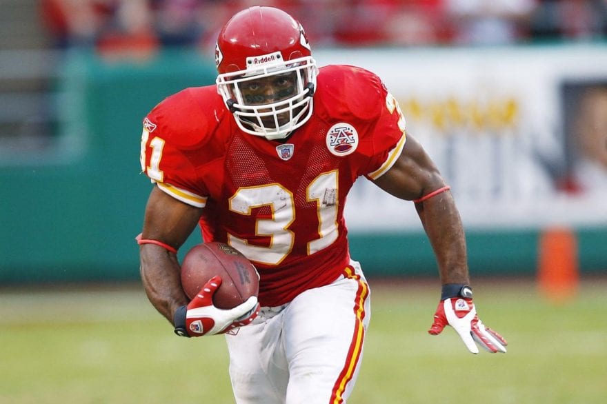 Holmes was an undrafted free agent and signed the Baltimore Ravens in 1997. He was able to contribute in a backup role during his four seasons with the team. When he received a real chance at a starting gig in Kansas City, his career really took off. In his first season with the Chiefs, he took down the league rushing title with 1,555 yards. But he was just getting started, as he led the league in rushing touchdowns in each of the following two seasons. In 2002, he scored 21 rushing touchdowns as well as 1,615 rushing yards. In 2003, he set a new NFL record with 27 rushing touchdowns, clearly becoming the top running back in the league during that three-year stretch.