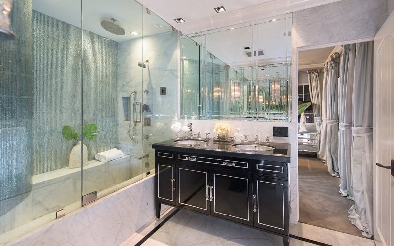 The marble bathtub doubles up as a shower, but it does it in the best way possible. With a shower head on the wall and another on the ceiling, you were sure to get a thorough clean in here. There was even a perch on the side to sit on and chill as you let your cares wash away.