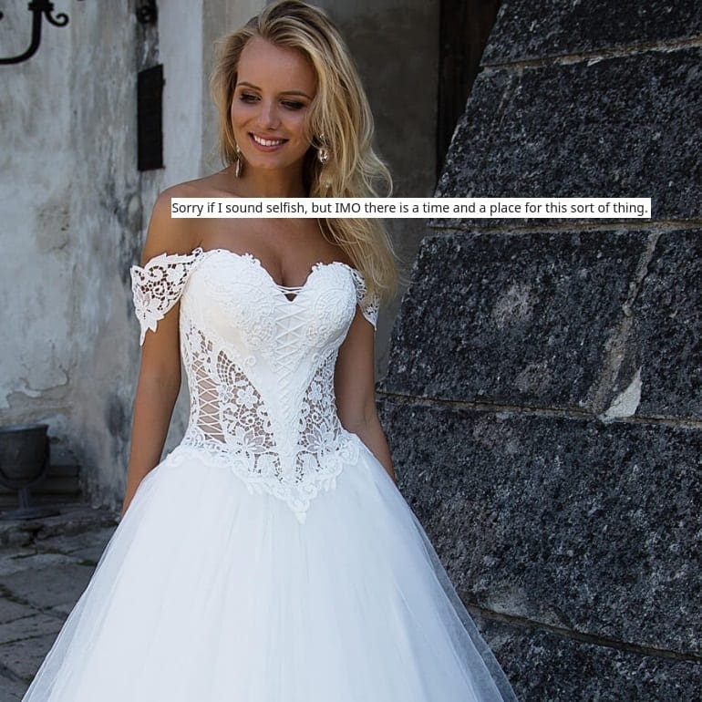This bride thought that there was a time and a place for such conversations – and her wedding day wasn’t one of them. Many brides can spend thousands getting their dress, hair, and all their accessories in place for their day.