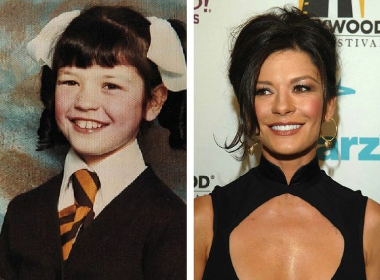 Although she may now be a model of beauty, there was a time where Catherine wasn’t quite as red-carpet ready. While at school she rocked rocky bangs, adorable pigtails, and an excessively large collar on her school shirt. Nevertheless, these two photos show just how kind puberty has been to her.