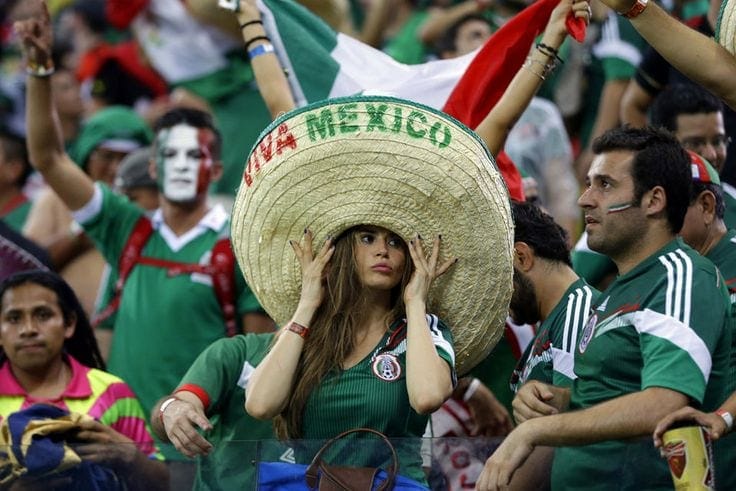 Soccer is a huge sport in Mexico, and many of their fans turn up in their thousands to cheer on El Tricolor. This fan has combined beauty with a traditional Mexican accessory, the sombrero.