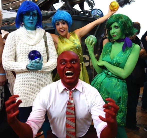 Now this picture is just awesome in so many ways. In the hit Pixar film Inside Out, we come into contact with characters who are categorized as “feelings” – and the ones in this picture are Joy, Sadness, Anger, and Disgust.