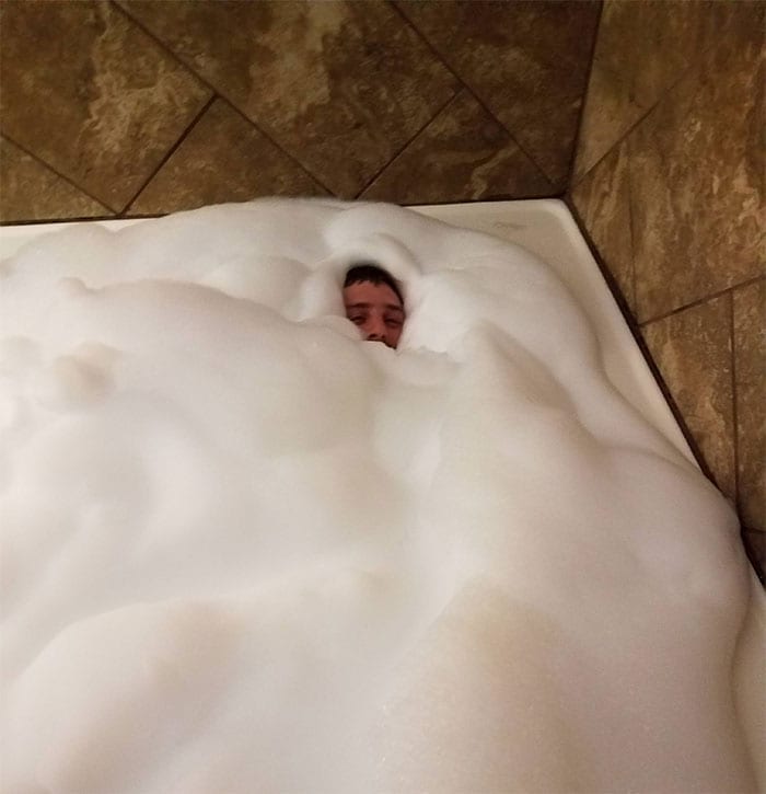 Así que deciden tomarse un baño agradable y relajarte con agua caliente y una gran cantidad de burbujas. Este chico hizo esto exactamente, pero al parecer, no tomó en cuenta la cantidad de jabón que colocó en el agua y terminó cubriéndolo por completo. Al menos sabemos que se está divirtiendo mucho.
