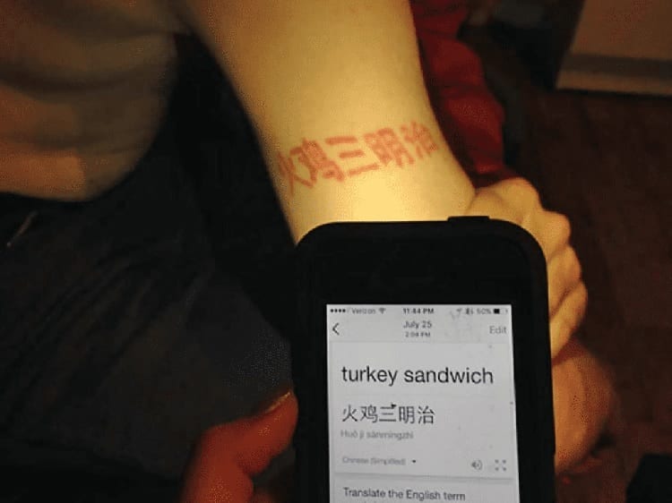 Cuando este chico decidió hacerse este tipo de tatuajes, nunca espero que el significado se trate de comida. La palabra que se tatuó decía en chino “sandwich de pavo”. Seguramente en China muchos de los habitantes se reirán un buen rato de él.