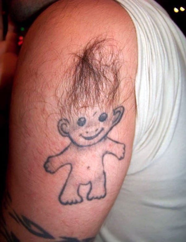 Las muñecas troll son juguetes populares que son particularmente conocidos por su sobresaliente cabello colorido. Este hombre notó que el pelo en la parte posterior de su brazo se parecía al estilo del de la muñeca, y decidió utilizarlos de una ingeniosa manera.