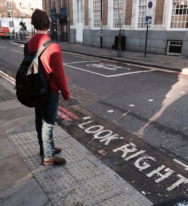 Here is a guy who is doing the exact opposite of what the sign says. It’s telling him to look right and he, without shame or hesitation, is looking left.