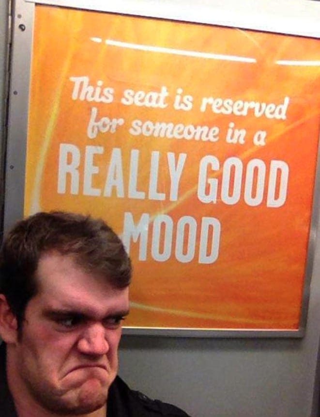 When you’re in a bad mood, there’s simply nothing worse than someone telling you to smile, or turn your mood around. So when this guy got on the train and saw that there was a sign reserving a seat for someone in a “really good mood,” he was having none of it.