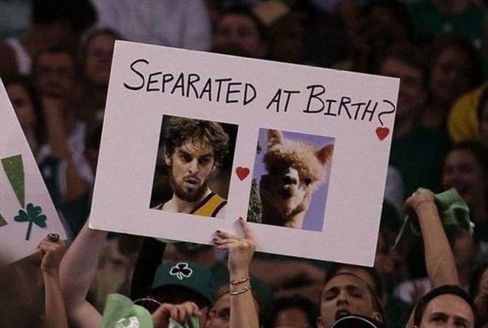 A fan decided that Spanish basketball player Pao Gasol looks remarkably like an alpaca, and held up a sign about it, during a game where the Boston Celtics were playing Gasol’s San Antonio Spurs. The sign is all in fun though, and Gasol has had an impressive career, so he probably doesn’t care too much what that fan thinks.