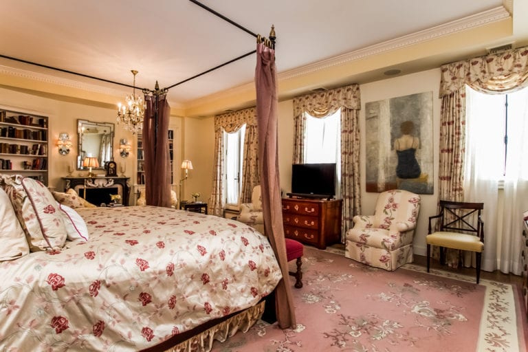 This is one of the eight bedrooms in the Seafair mansion. The vintage decor definitely matches the rest of the house, with draping silk curtains and a pricey oriental rug. Complete with a king size bed, this comfortable yet luxurious bedroom is one we wouldn’t mind catching a good night sleep in.