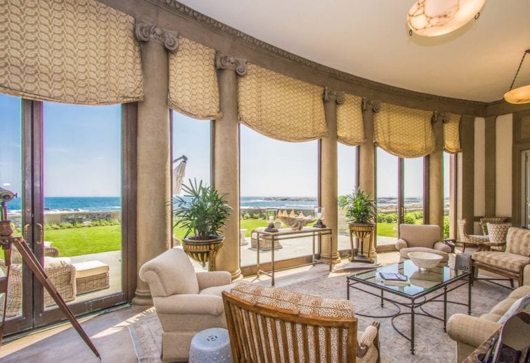 Sit back, relax, and take a look at this stunning sunroom located in the rear of the house. Who wouldn’t want to sit here, read a book, and enjoy a cup of coffee while soaking in the panoramic ocean landscape that actually looks like it could be from a painting.