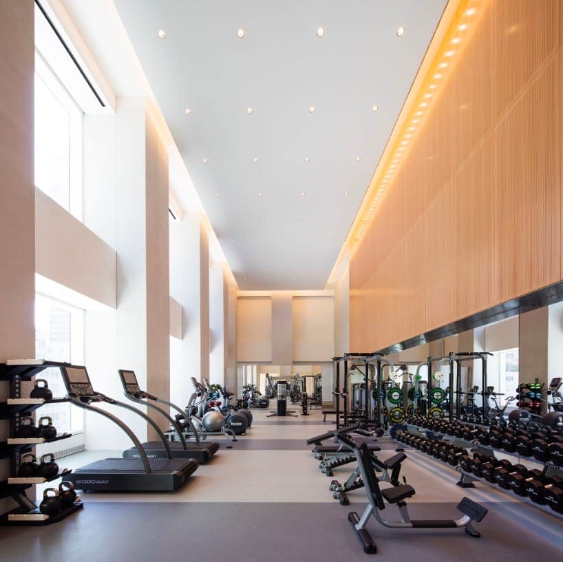 This double-height, handsomely-designed private gym dedicated for building residents only is likely the place where the power couple goes to get their sport on. With state-of-the-art equipment and a large selection of machines and weights to choose from, gym-goers can work out while enjoying panoramic views of the city and plenty of natural sunlight.