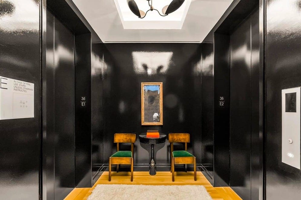 Instead, after a long day, homeowners can just come back in peace while stepping into their own personal elevator landing covered with sleek, black lacquered walls. The lift, which is reserved only for the apartment’s owners and their guests, leads right up to the 36th-floor condo, providing an entrance that is equally luxe and convenient.