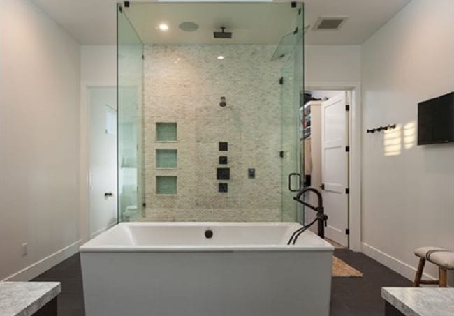 If he’s not feeling like a long soak in the tub, Tarek can take a step into his walk-in shower that comes with a host of functions to help relax those tired muscles.