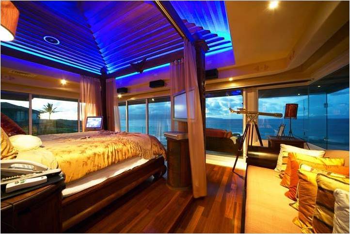While the stars are busy lighting up the night’s sky, Woods’ own personal lighting is setting the mood in his luxurious beach house. When he wakes up in the morning Woods can close the drapes on his four-poster bed to shut out the light for a few more minutes.