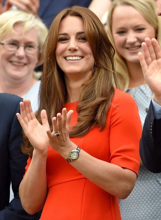 However, the sports stars have a strict all-white dress code that must be adhered to no matter what. Although the rules don’t extend to the crowd, it appears as though Kate was trying her hardest to stand out from the others. Why blend in when you can opt for bright orange instead?