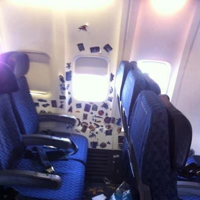 Los bebés no saben diferenciar entre sus casa y un avión, y piensan que todas las paredes son para pintarse. Los tremendos bebés que se sentaron aquí pensaba en darle un toque más divertido al avión y colocaron pegatinas por toda la pared.