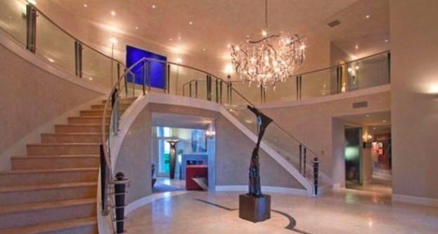 Full with six bedrooms, seven bathrooms, a swimming pool and a home theater, this house spreads out to around 9,000 square feet. A majestic double-stairway takes one up to the second floor, where there are more goodies to be found.
