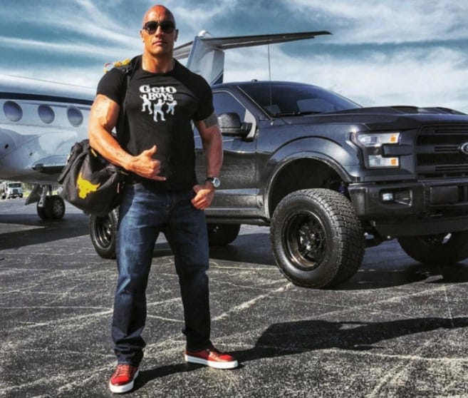Granted, this Ford F-150 Custom Built Pickup was probably very expensive – but it certainly gives off a different vibe than a Ferrari, or a Bugatti. It gives off an air of wear and tear, a feeling of adventure, a disregard for perfection and cleanliness. This car reflects Dwayne Johnson in a deep way, and the chemistry comes through effectively.