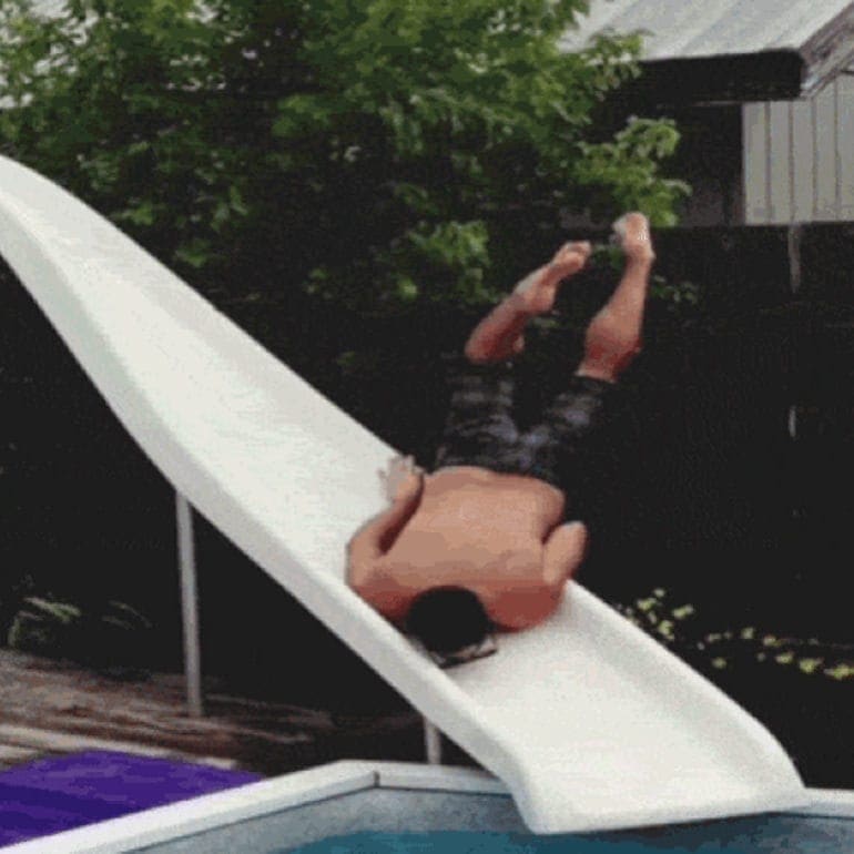 Cuando nos encontramos en la piscina, a todos nos ha entrado las ganas de hacer un impresionante clavado y pasar un buen rato divirtiéndonos. Este chico esperaba tener un agradable día en la piscina de su casa y en cierto momento decidió que era buena idea lanzarse del tobogán, sin embargo, las cosas no salieron como pensaba.