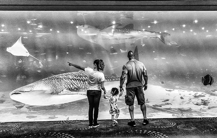 In a dangerous move, Johnson decided to introduce his family to some giant whale sharks. Notice how they aren’t getting as close to these animals as The Rock did with the others?