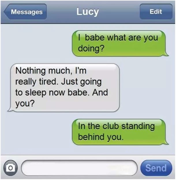 This text message might just be the beginning of the end for this couple. For some reason, Lucy felt the need to lie about where she was and what she was doing when her boyfriend text to ask her.