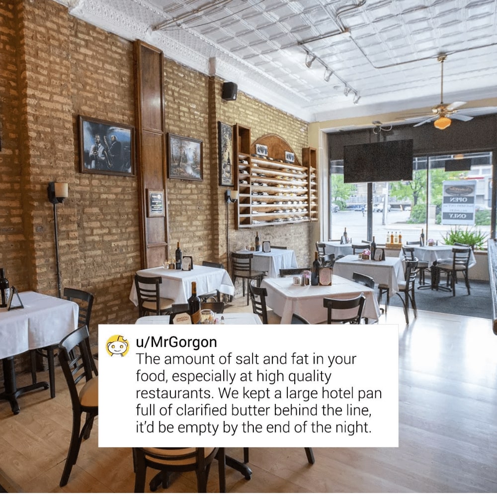 That’s right, even if you eat out at high-quality joints, it doesn’t mean that you’re always putting food into your body that it needs. Yet, this is something that most people expect when they go out to eat. When you take into consideration just how much salt and fat a restaurant “goes through” in a night, however, it becomes pretty alarming. Still, this one’s not too shocking, but it goes to show that you really do need to be careful no matter where you’re eating out.