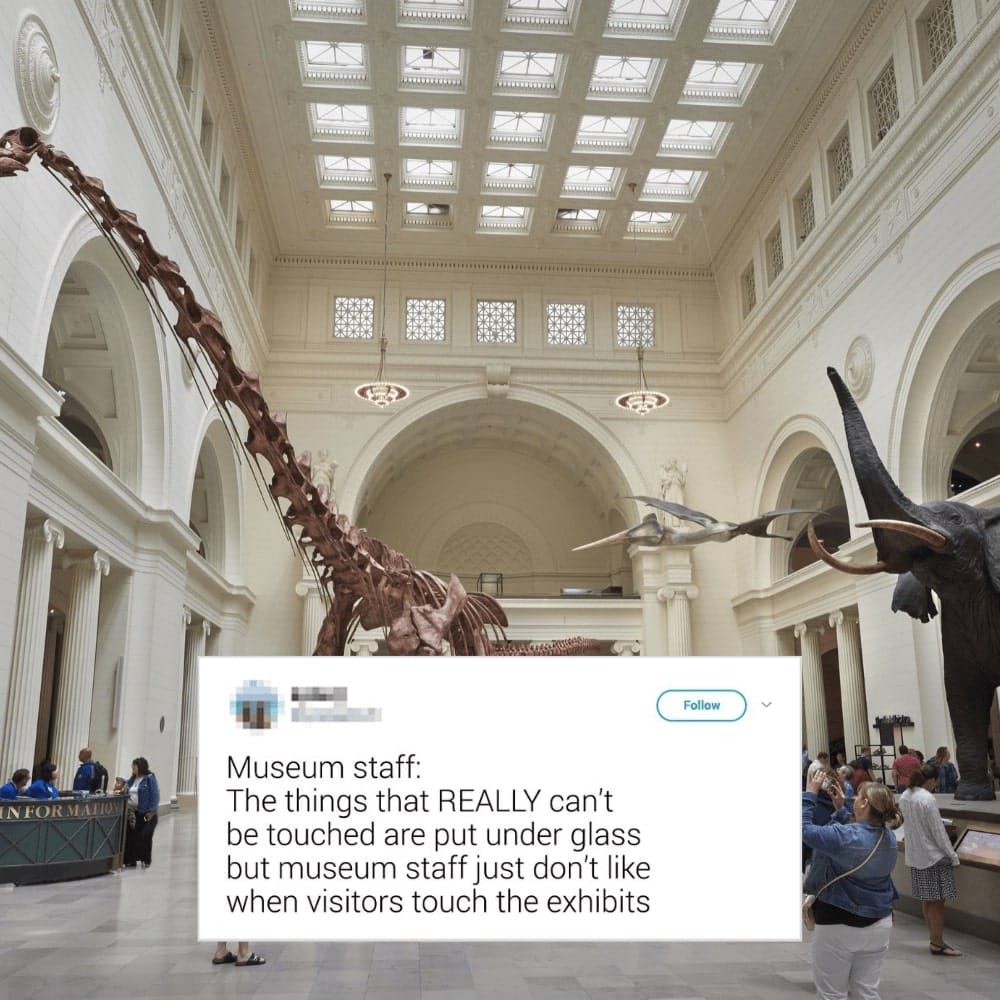 Do you really think that museums would risk putting the stuff that really can’t be touched out in the open? The stuff that you see that is not supposed to be touched is only that way because museums prefer it that way. Now, if you see stuff that is behind glass, then that’s the stuff that really can’t be touched. The other items that are out in the open just shouldn’t be touched. Basically, museums don’t want you to touch anything. No, literally anything.