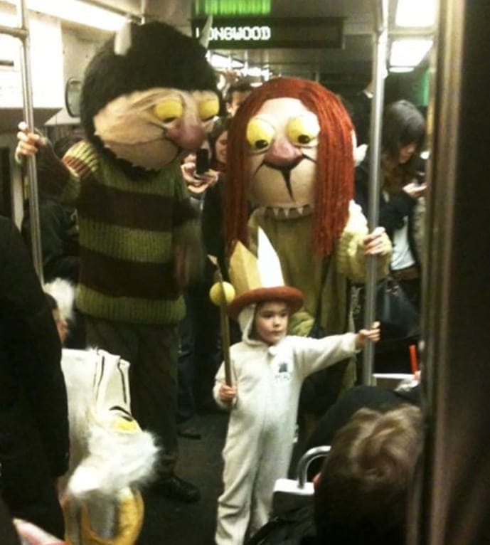 While we all know the story of Where the Wild Things Are, that doesn’t stop us from being pretty darn scared of the Wild Things. This kid is totally adorable with their crown. The parents and their floppy hair? Not so much.