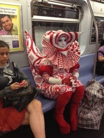 We appreciate the effort that this person has put into their costume, but they really could have toned it down a little. The tail, the face paint, the colors. It’s all a little too much for our innocent minds.