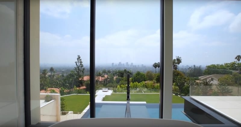 He not only gets to wake up to this view, but he also gets to have a bubble bath in the process. As if that wasn’t enough, this bath also gives endless views over the pool area and the backyard below.