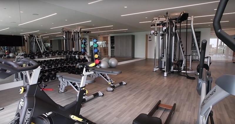 When you think of a home gym, you probably think of a few free weights, and maybe even a gym ball if you’re lucky. However, this mansion in Bel-Air takes this to a whole new level.