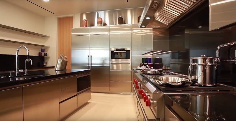 No mansion would be complete without a beautiful kitchen, and this kitchen certainly does the job. Created with an industrial/restaurant-style theme in mind, this cooking area would not look out of place in one of the best eateries in Los Angeles.