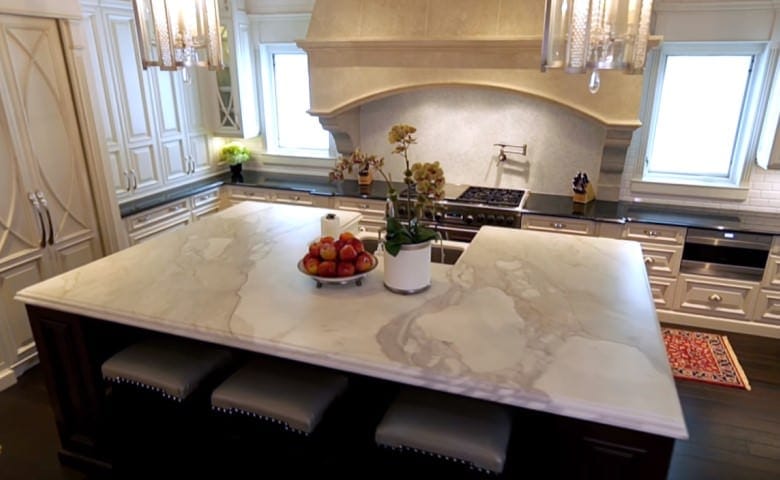 A large island counter sits in the middle of Cena’s kitchen to allow a sociable cooking environment. There is plenty of worktop area so Cena can cook up a storm in the kitchen, making as much mess as he wants without running out of space.