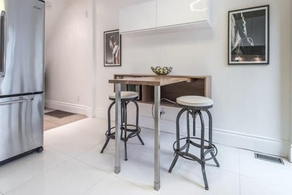 Thankfully, she didn’t have to sit all alone on her giant dining table, because her kitchen came equipped with a small breakfast bar that would be perfect for a quick bowl of cereal. Perhaps the other stool was for Prince Harry?