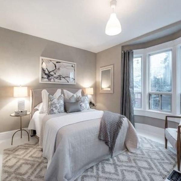 We can really get a feel for Meghan’s aesthetic within her house, as she has continued to deck her bedroom out with grays and soft colors. The geometric rug is also a great addition.