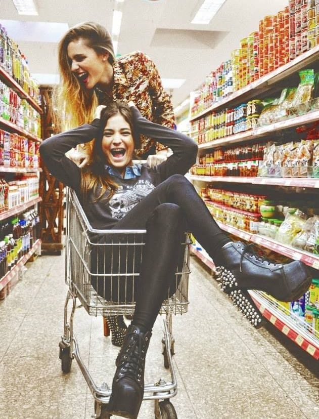 Their huge smiles say it all as they run down the aisles. Considering one of them’s sitting in the trolley, the pair isn’t doing a great job of picking up food. However, there will be plenty of time to collect their groceries after they’ve had their fun and games.