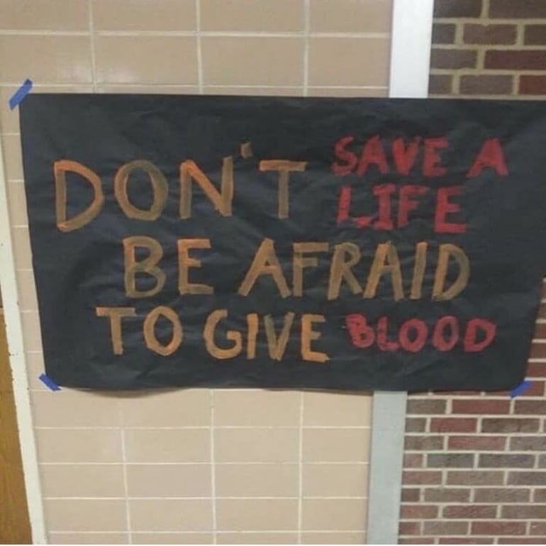 Where you put your words is so important in getting your message across. This person is trying to encourage people to give blood, but the message is mixed and actually seems to be warning people. Should you be afraid to give blood?