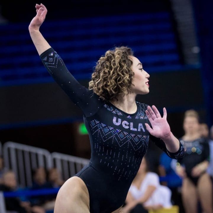 So, after taking a breath, she launched across the floor with a look of determination. A handstand turned into several twists in the air, which then became even more twists, culminating in the gymnast landing in the splits and bouncing straight back up again. The audience went wild.