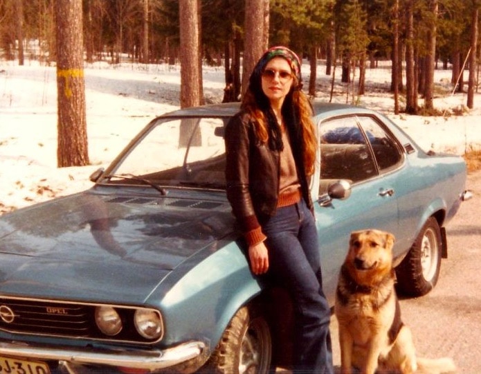 Although the 70s are remembered for tie dye, bandanas, and vintage muscle cars, this son wasn’t expecting his mom to capture the zeitgeist of the era so perfectly. In the photo he turned up of her young woman days, she’s seen standing in front of her Manta with a rainbow headcover on.