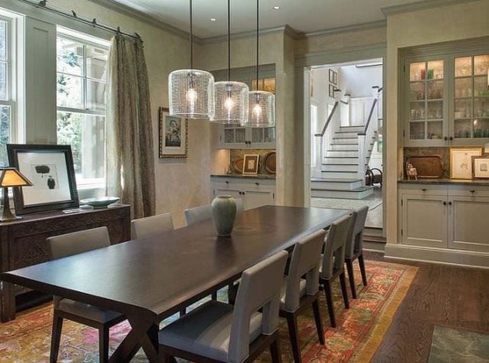 In case the Willis family don’t fancy eating in the kitchen, the mansion also has a large dining room. The table can seat many guests in a modern, yet traditional manner. This room also has multiple cabinets full of glassware, and another fireplace.