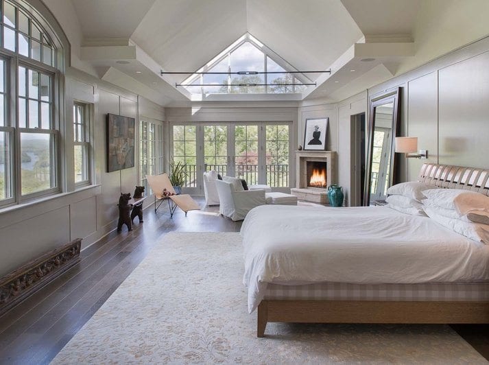 This bedroom in Willis’ mansion could almost pass as its own apartment. Like many of the other rooms, this one has a hardwood floor, along with being bright white and open. Even the bedroom has a fireplace and some armchairs for relaxing.