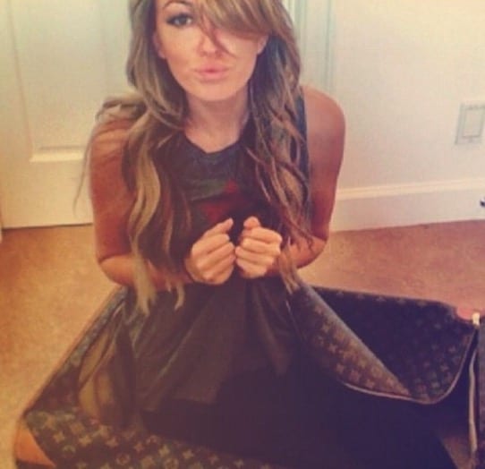 At first glance, this picture may just look like another one of Paulina’s awesome pictures, and she certainly makes this especially true with a classic duck “kissy” face pose… But if you look twice, you’ll notice that she’s standing a giant laundry hamper. Well, how about that… Here we were, thinking that we had seen it all with this girl, and she pulls another fast one in front of us with this. This one has certainly got herself a nice sense of humor!