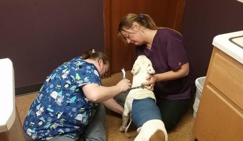 They even felt as though he may have been abused as well as abandoned. The vets also had more troubling news about Rocco. It turned out the dog had been in his harness for such a long time that it had begun to fuse to his skin.
