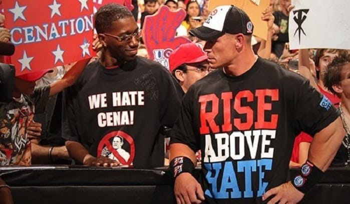 Over the last half a decade, perhaps longer, John Cena has become quite the opposite of a ‘fan favorite.’ Many speculate that this is due to WWE constantly trying to push John Cena on fans. In fact, chants of “Cena sucks” can often be heard throughout the crowd at any WWE events, along with loud boos whenever he enters the ring. In order to adapt, WWE and Cena himself now play to the crowd, encouraging the “Cena sucks” chants and calling him the “most divisive champion in history.”