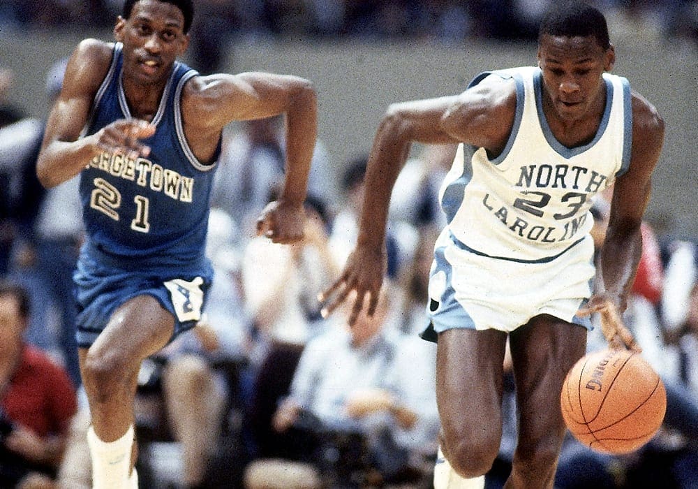 It didn’t take long for Jordan to win the top prize in college basketball. The Tar Heels were a no. 1 seed in the East during the 1982 NCAA Tournament, blowing past Ohio State, James Madison University, Alabama, Villanova and Houston on their way to the title. UNC faced the Georgetown Hoyas in the Championship game, and won by a single point 63-62. Jordan scored 16 points with 9 rebounds and 2 assists to beat Patrick Ewing and the Hoyas.