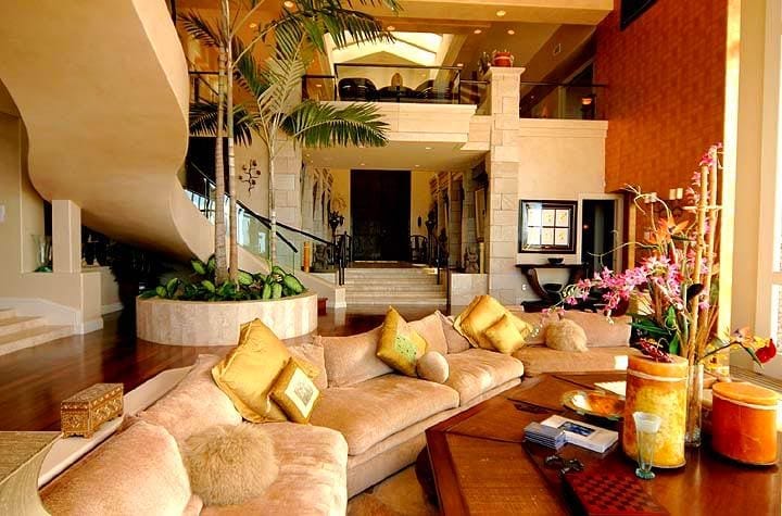 The couch has been placed on a lowered floor to give this room some extra style. The table faces out onto the ocean, so Woods and his family can enjoy a nice coffee while they take in the views living on a Hawaiian island brings.