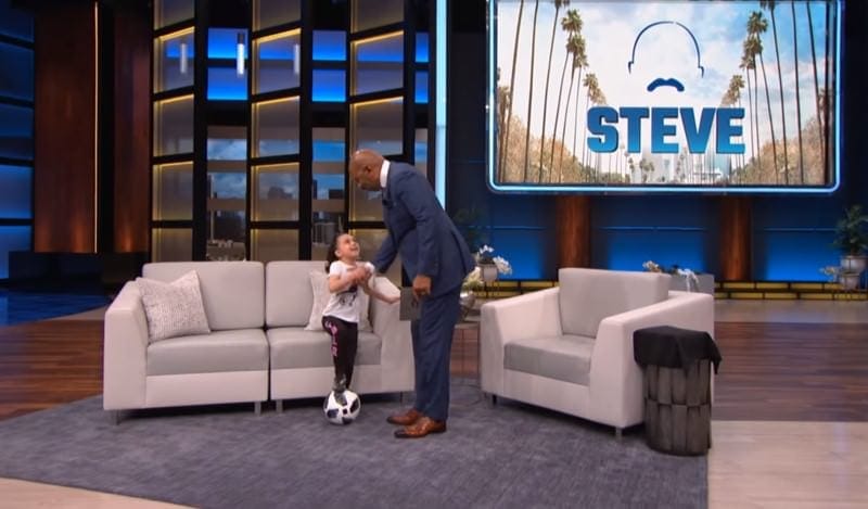 This was not the first time that Ariana and Steve had been in each other’s company. Ariana featured on one of Steve’s other shows, Little Big Shots, where she was once again exhibiting her soccer playing skills to the world. In that show, she took on Steve in a penalty shootout, where Steve would stand in goal and try to save Ariana’s shots. Ariana was impressive on that show and scored lots of goals past Steve.