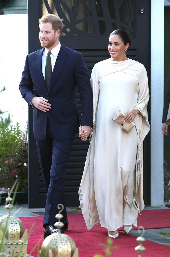 On February 26, 2019, she made her way to Morocco with her husband to attend the British ambassador’s reception. For this event, she donned a beautiful Dior gown. The floaty dress covered her bump, but also clung to her stomach, revealing her belly button.
