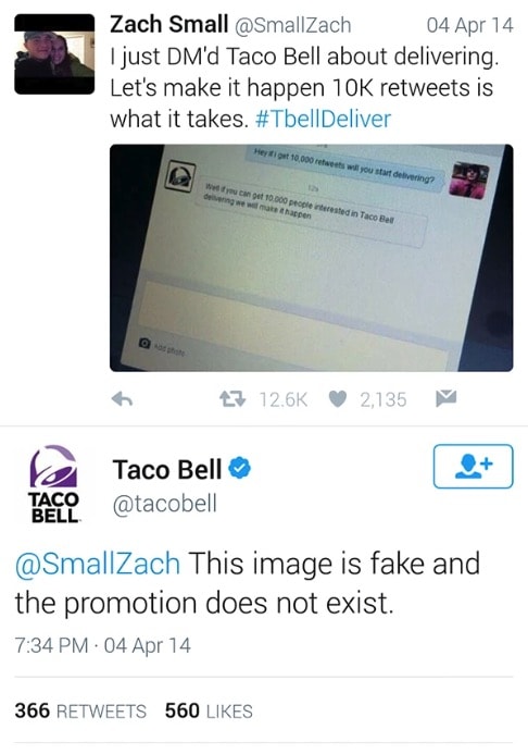 Anyway, this guy loved TB so much that he created a fake promotion to get people excited about the possibility of them delivering. Then, he was cruelly shut down by Taco Bell themselves.