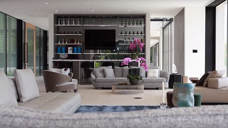 Once you make your way into the main hallway and into the first of many living rooms, you really get the sense of the overall aesthetic of the house. With neutral colors, soft furnishing, and modern details, this is the kind of living room that will double-up for different occasions.
